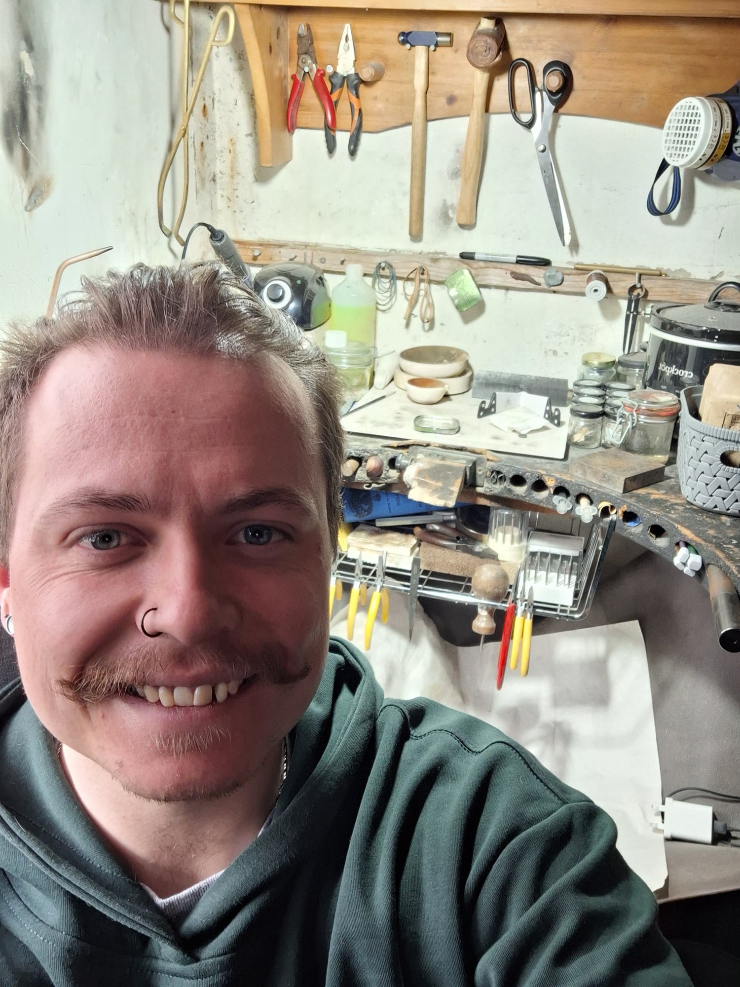 Greetings, my name's Mitch. I am a professionally trained gold and silversmith from the Westcountry. Hailing from the Isle of Portland I have a love of historic, folk and nautical themes in my work. Made from recycled gold and silver, all my creations are designed and made by hand using a variety of techniques including sculpting, sand casting, wax masters, and many more.
